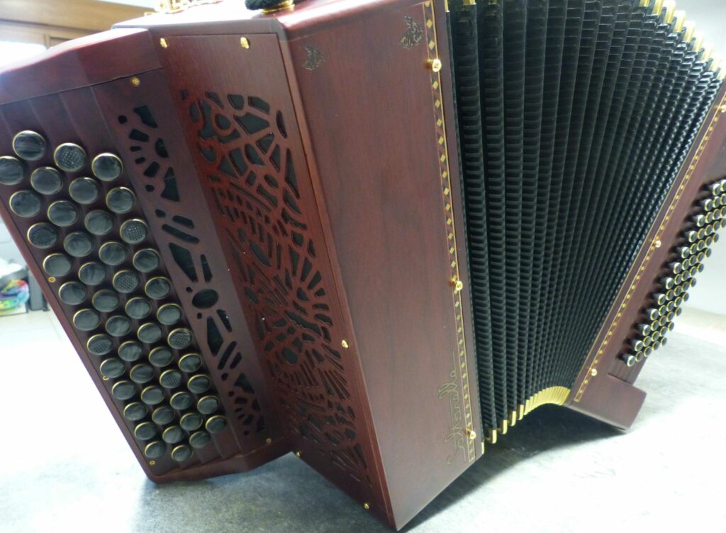 Fabriqué en Wengé pour un look sobre et élégant le Pannonica est un accordéon chromatique complètement novateur aux caractéristiques encore inédites dans le monde de l’accordéon.