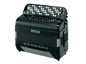 Main gauche : 49 notes, 2 voix (flûte et basson), 3 registres en basses chromatiques. 102 basses standard, 7 registres.